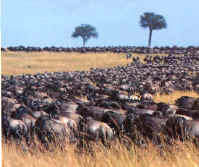 wildebeest and zebras migrating from the Serengeti to the Mara in